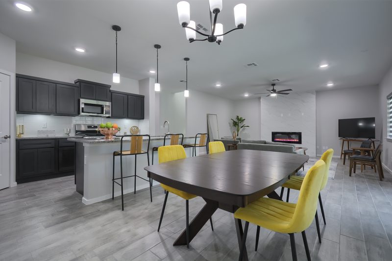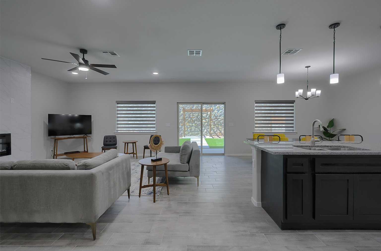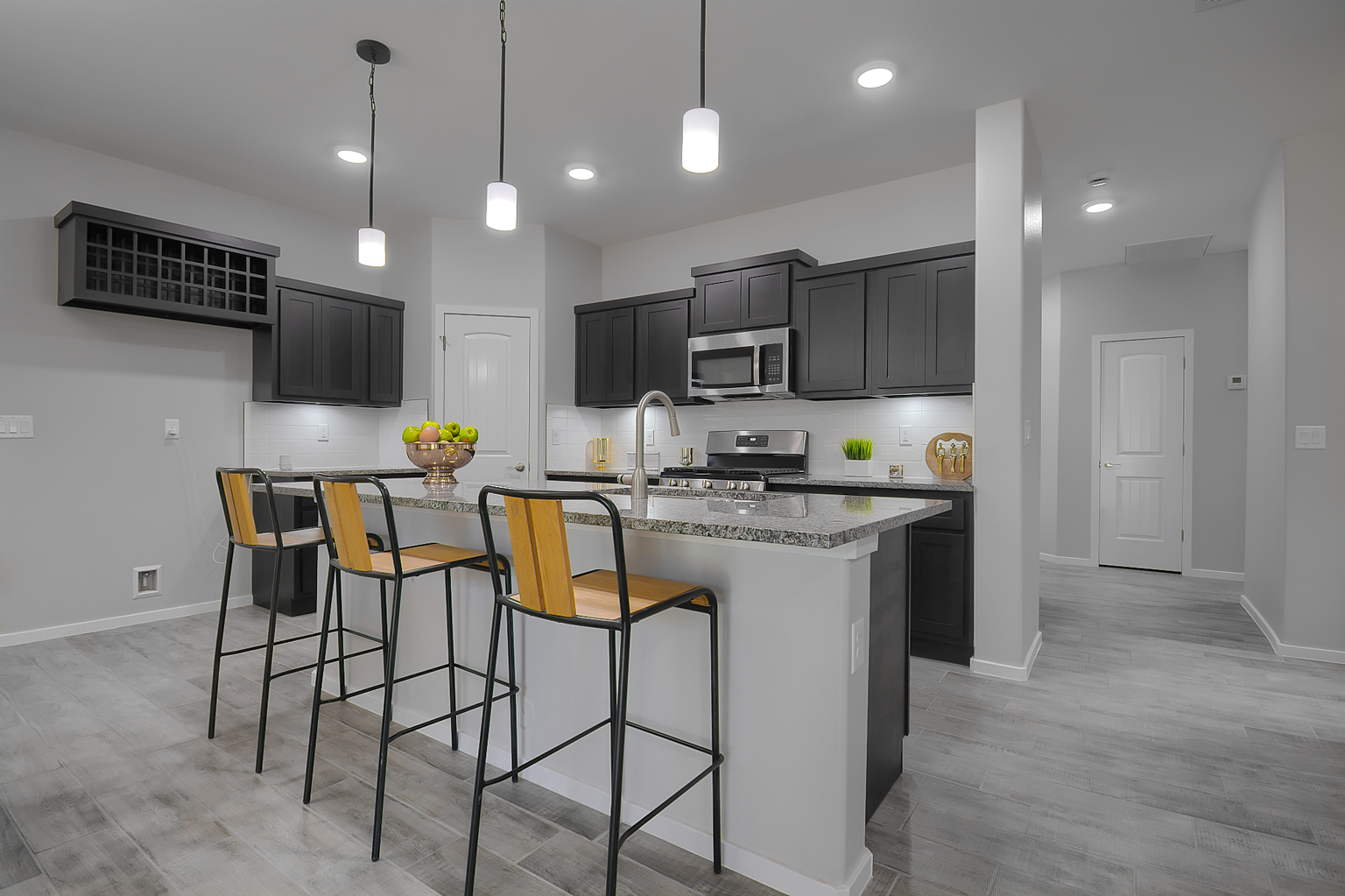 Introducing The James, a luxurious two-story home with a large laundry room and bathroom on the main floor, this spacious home offers the perfect blend of functionality and style. The open-concept living area, highlighted by an electric fireplace, seamlessly connects the dining area and kitchen, which boasts beautiful granite or quartz countertops, stainless steel appliances, and a walk-in pantry. The tiled flooring throughout the entire downstairs, including the bathrooms, adds an elegant touch.