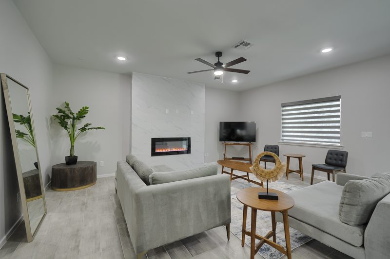Upstairs, the bedrooms, including a primary suite, offer ample space for relaxation. The primary bath is a retreat, offering a separate tub, walk-in shower, dual vanity sink with framed mirrors, and a super-sized walk-in closet. Step out onto the back-covered patio for memorable backyard family gatherings.