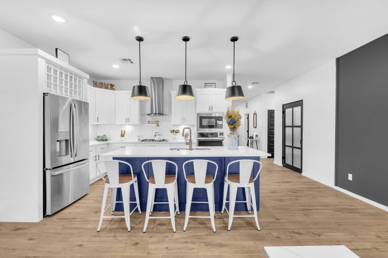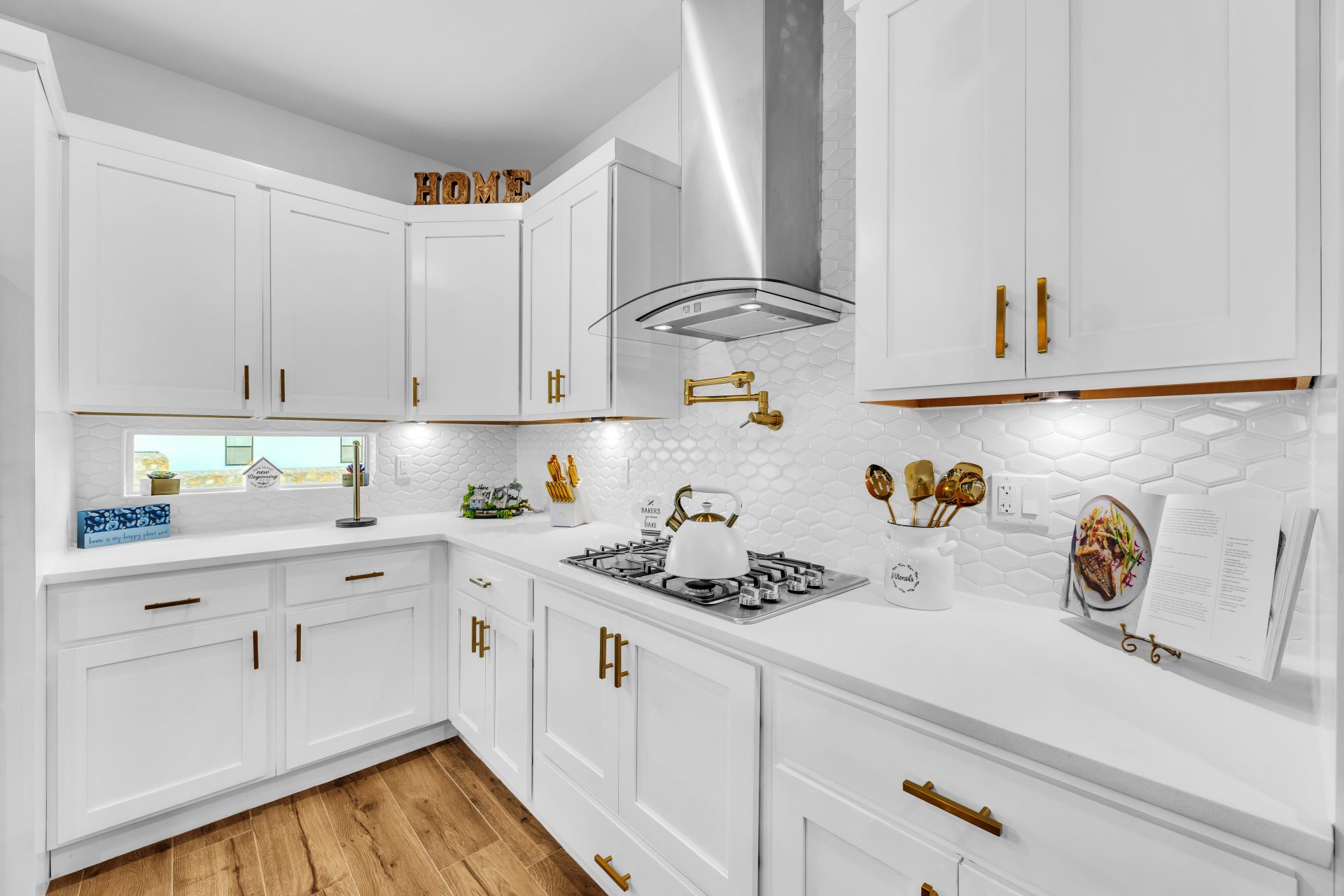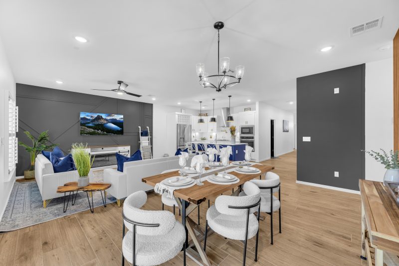 The gourmet kitchen includes upgraded finishes, elegant cabinetry, and a large island that flows seamlessly into the dining and living areas. Premium upgrades are included throughout — offering both style and functionality.